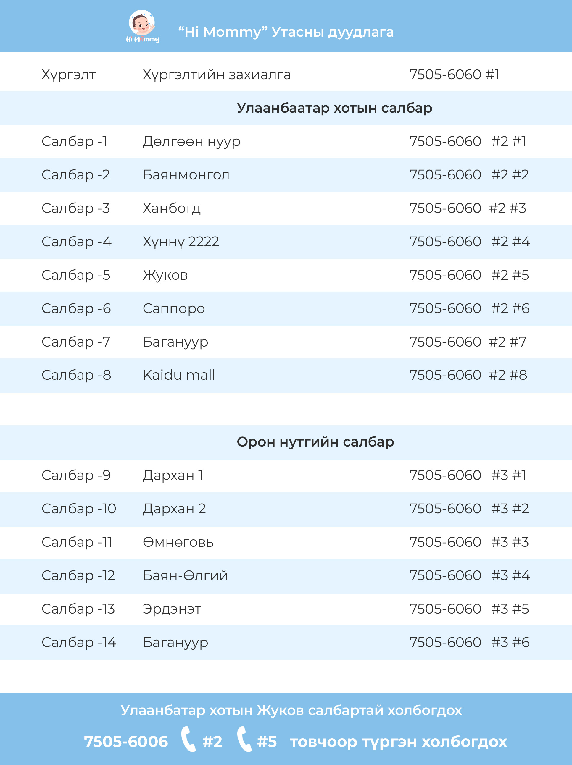 Хэрэв та утсаар холбогдон захиалга өгөх бол: